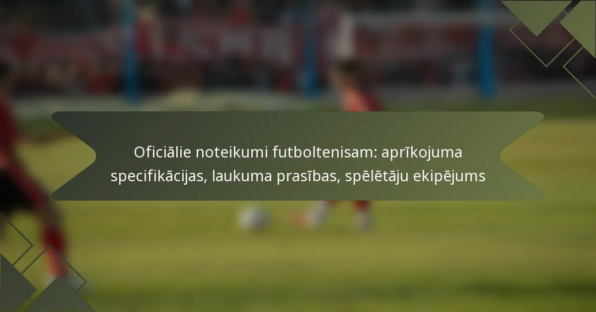 Futbola teniss apvieno futbola un tenisa elementus, prasa specifisku aprīkojumu un laukuma specifikācijas, lai nodrošinātu godīgu spēli. Spēlētājiem jāievēro vadlīnijas par bumbas izmēru, tīkla augstumu un laukuma izmēriem, kā arī jāizvēlas piemērota apavi un aizsargaprīkojums, lai uzlabotu sniegumu un drošību. Šo oficiālo noteikumu izpratne ir būtiska gan spēlētājiem, gan organizatoriem, lai izveidotu optimālu spēles vidi.