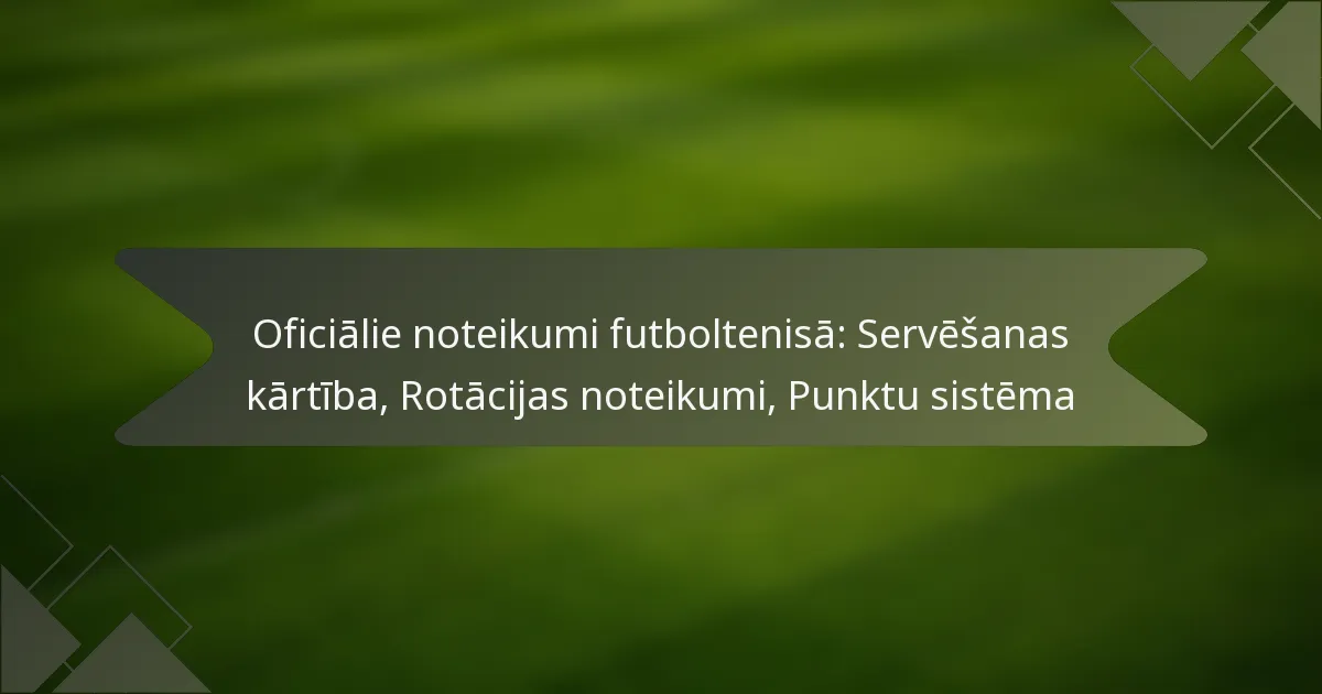 Rotācijas noteikumi futbola tenisā nosaka, kā spēlētāji maina pozīcijas un servē spēles laikā. Šo noteikumu izpratne ir būtiska, lai saglabātu godīgumu un uzlabotu spēles dinamiku.